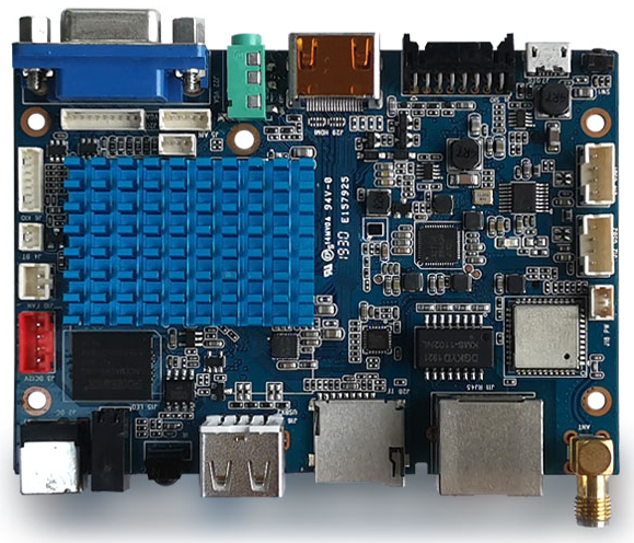 Процессорная плата RK3288 Quad-Core 1.8ГГц, 2Гб RAM, 8Гб eMMC, VГбA/HDMI, 4xCOM, 4xUSB2.0, GPIO, GPS, Wi-Fi, LAN, BT 5.2, TF Card, Audio, 100x72мм, 9-15V