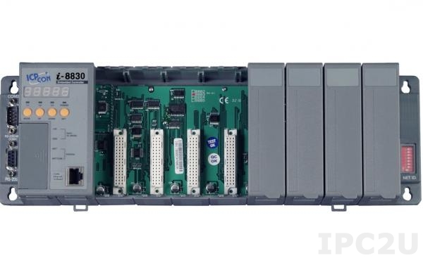 Программируемая корзина расширения для модулей I-87K/I-8K, 40МГц, 256кб Flash, 128кб SRAM, 1xRS232, 1xRS485, 1xRS232/485, 7-сегментный индикатор, Mini OS7, 8 слотов расширения, протокол DCON