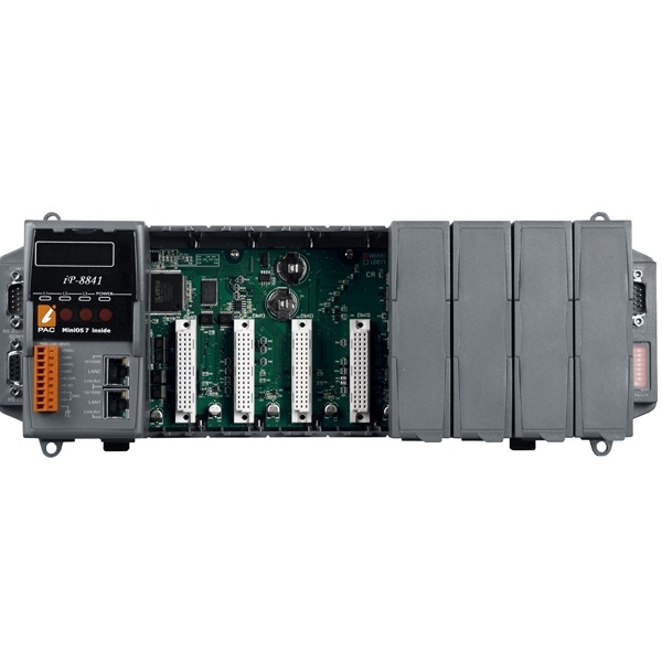 PC-совместимый промышленный контроллер 80МГц, 768кб SRAM, 512кб Flash, 64 MB NAND Flash диск, 2xLAN, 2xRS232, 1xRS485, 1xRS232/485, 7-сегментный индикатор, 8 слотов расширения, Mini OS7