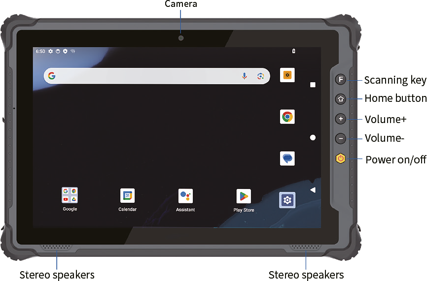 Планшетный компьютер IP65, 10.1" FHD 1200x1920, QCM6490, 8Гб RAM, 128Гб Flash, WiFi 6, BT 5.2, 5G, GPS, USB3.0, USB type C, HDMI, 2xNanoSIM, 5/8Мп камера, аккумулятор Li-Poly 7.6V/5000mAh, Android 14/GMS