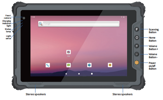 Планшетный компьютер IP65, 8" FHD 1200x1920, RK3568, 8Гб LPDDR4x, 128Гб Flash, WiFi 6, BT 5.2, 4G, GPS, USB3.1, USB type C, HDMI, SIM, 5/8Мп камера, аккумулятор Li-Poly 3.8V/10000mAh, Android 12
