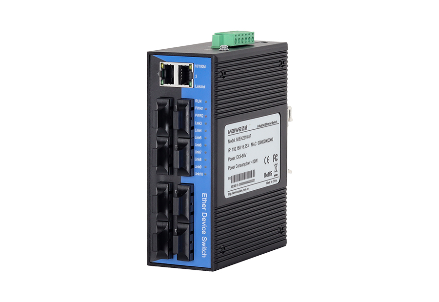 Компактный неуправляемый коммутатор Layer 2 на Din-рейку, 8 x 100M Fx, 2 x 10/100M Tx, резервируемое питание DC9-60V, Single-mode, FC разъем, 60км, IP40, -40...+85C