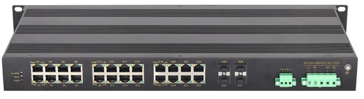 Промышленный L2 PoE управляемый коммутатор, 4 порта 1000BaseSFP, 24 порта 10/100/1000BASE-T(X) PoE/PoE+, питание 48-57VDC, -40...+75C, MISCOM7028GP-4GF-24GTPoE-DC48