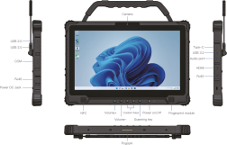 Защищенный ноутбук IP65, 14" 1920x1080, процессор Intel Core i5-1235U, 16Гб DDR5, 256Гб Flash, Wi-Fi 6 802.11a,b,d,e,g,h,i,k,n,r,u,v,w,ac,ax, BT 5.1, HDMI, 2xLAN, 1xCOM, 4x USB, SIM, TF, Cam 5 MP, аккумулятор Li-Poly 1300 mHA/11.1V +4850mHA/11.55V