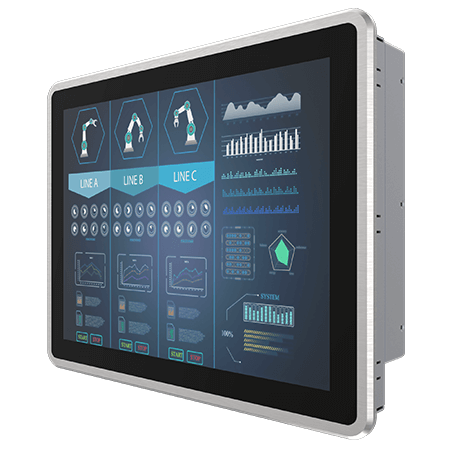 Промышленный 15" LCD монитор, разрешение 1024х768, яркость 300 кд/м2, VGA, HDMI, емкостный сенсорный экран, передняя панель IP65, питание 12В DC