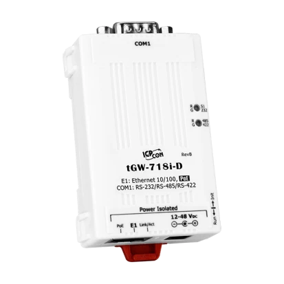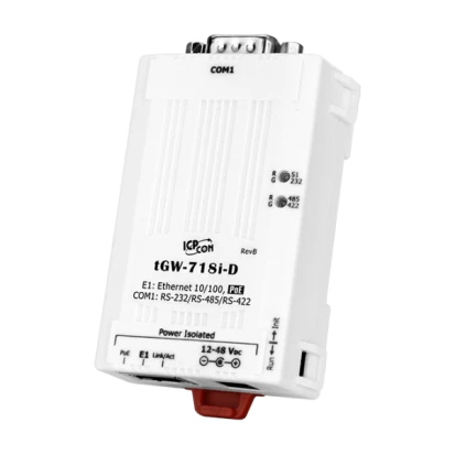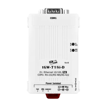 Компактный шлюз Modbus TCP в Modbus RTU/ASCII, PoE, 1xRS-232/422/485 с изоляцией (DB9 Male), кабель питания CA-002 в комплекте