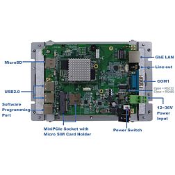 Панельный компьютер с 7" TFT LCD с сенс.экраном, NXP i.MX8M Mini, 1.6ГГц ARM Cortex-A53, 2Гб LPDDR4, 16Гб eMMC, LAN, COM, 2xUSB, MicroSD, Wi-Fi, BT, Audio, 12-36VDC-in, 0...60C
