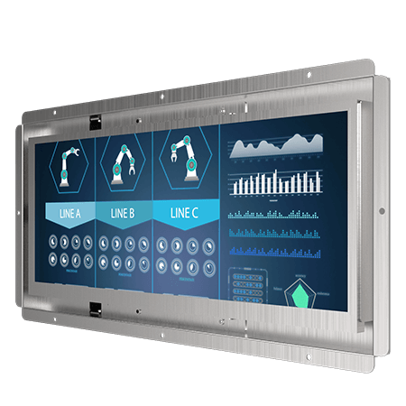 Бескорпусной промышленный 12.3" LCD монитор, разрешение 1920x720, яркость 1000кд/м2, защитное стекло, VGA, HDMI, питание 12В DC-In