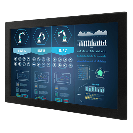 Промышленный 32" LCD монитор, разрешение 1920x1080, яркость 400 нит, защитное стекло, VGA, HDMI, питание 12В DC