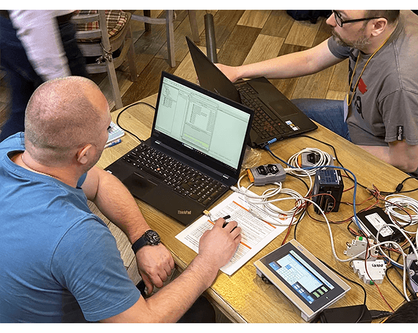 Участники самостоятельно программировали логику работы ПЛК, создавали проекты для HMI, управляли сервосистемами и отрабатывали сценарии взаимодействия между устройствами.